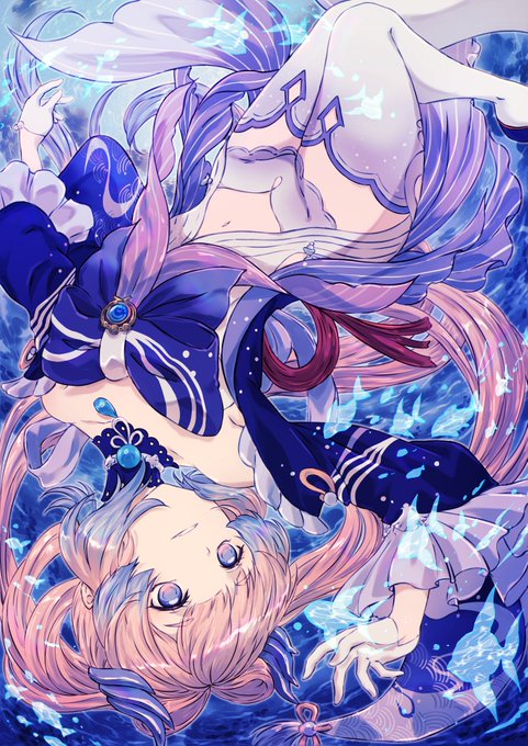 10 40 「水天遊泳」 制作過程はツリーに #珊瑚宮心海イラストコンテスト #Genshinlmpact #kokomi 23/08/02 21:53