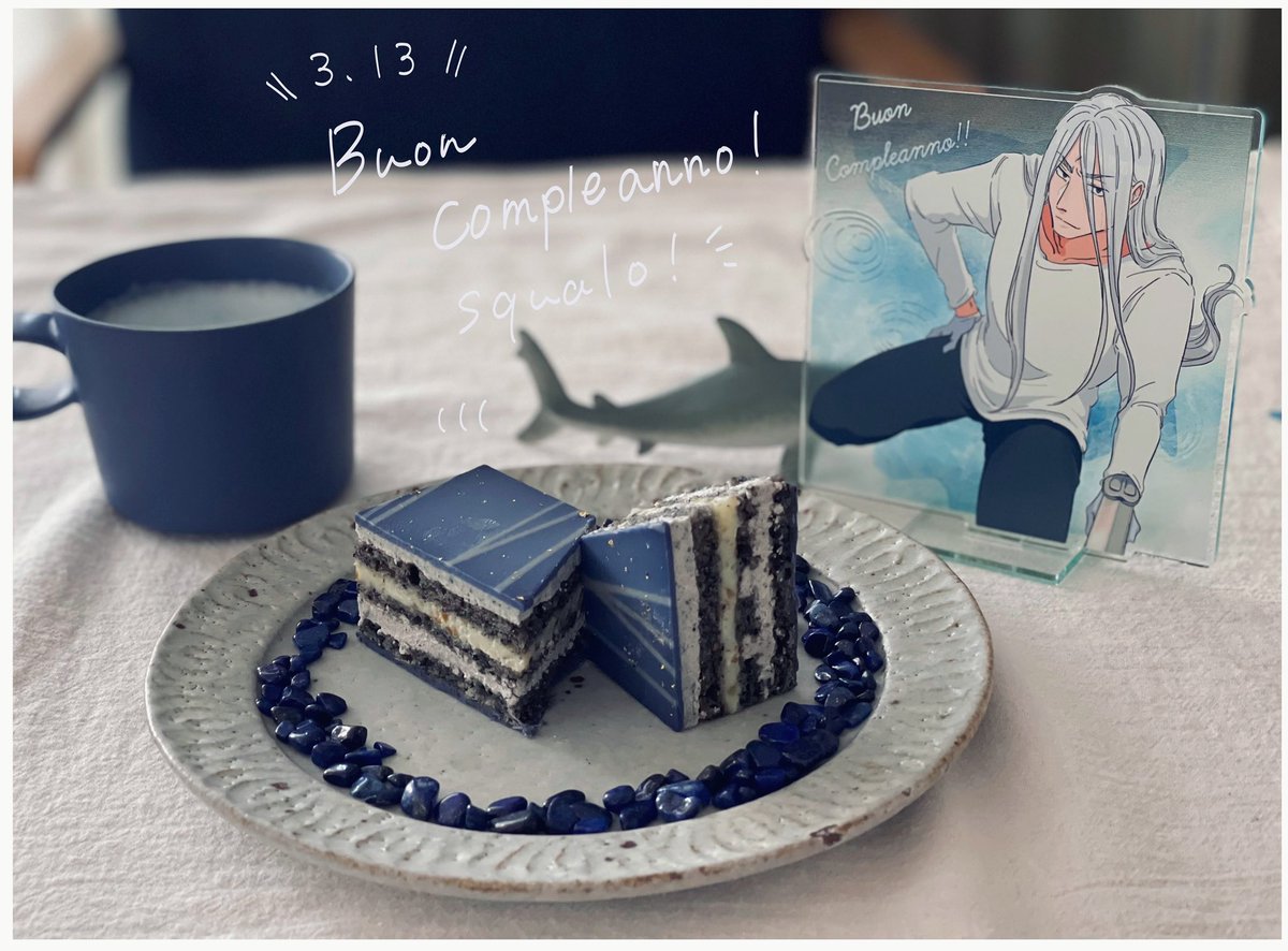 buon compleanno!!! 十数年経ってもずっと推しです!🦈 誇り高く、しぶとく、生き延びる推しが大好きです◌ これからも、この先もずっと、みんなに沢山お祝いしてもらってください〜💮 #スクアーロ誕生祭2022