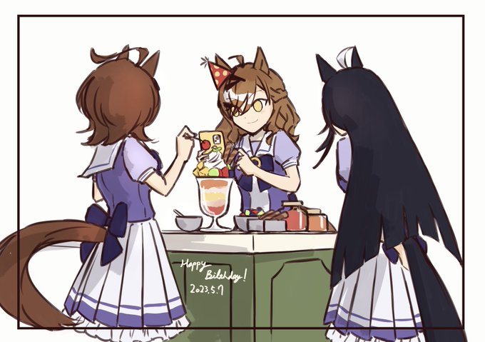 196 551 遅くなったけどトリプルバースデーおめでとう🎂 #マンハッタンカフェ生誕祭2023 #アストンマーチャン生誕祭2023 #ライスシャワー生誕祭2023 23/03/05 20:32