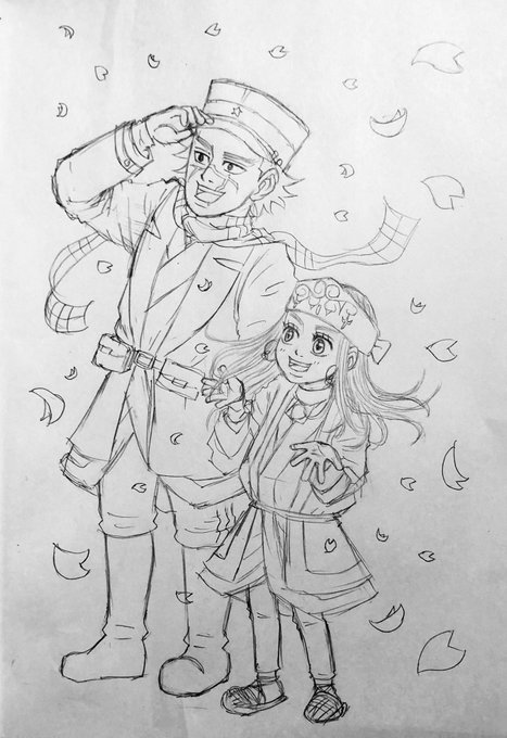 7 26 #ゴールデンカムイ版深夜の真剣お絵描き60分一本勝負 【お題】春・緑・花(本誌可) 「桜」 桜を眺める杉リパ|*´ω`*)))♪♪ (頑張ったけど色塗る時間はなかった💦w) 19/04/14 23:07