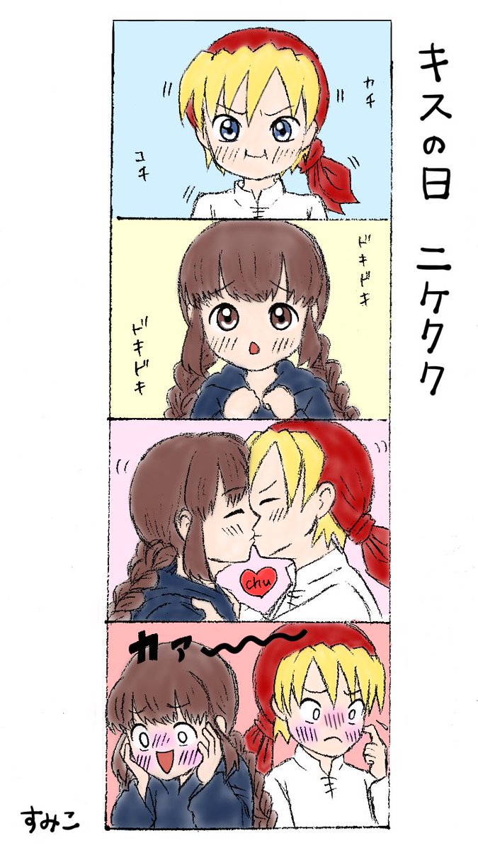ニケクク4コマ描きました🤗💕 (※遅刻ですw) #キスの日 #ニケクク