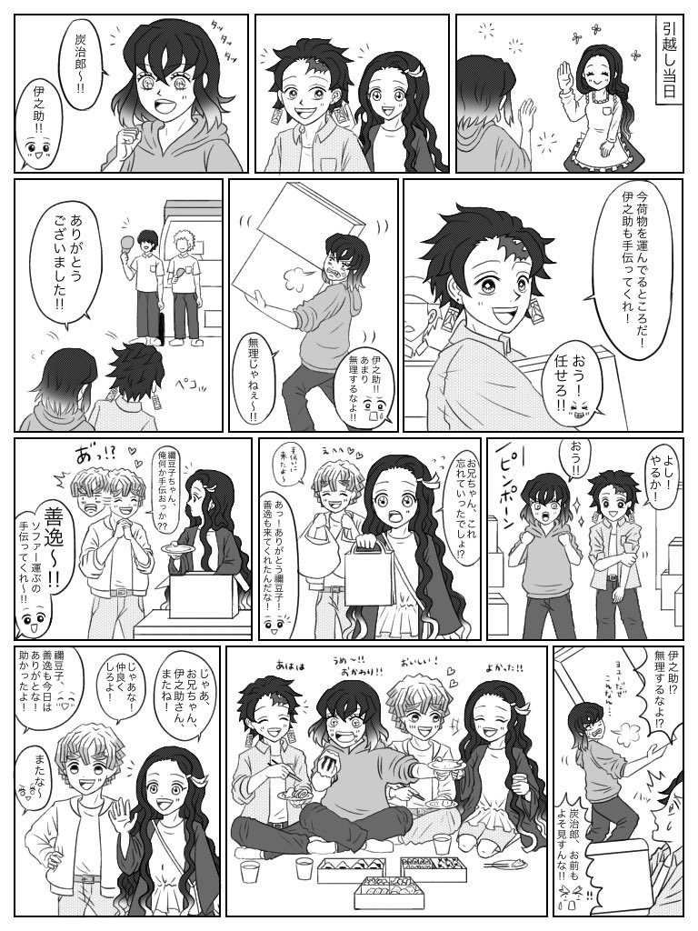 炭伊🎴🐗 同棲するための引越しだよ🤗💕 ※1ページ目はぜんねず(風味だけw)要素あり(かまぼこが描きたかっただけw) ※2ページ目からはガッツリ炭伊 ※背景は死んでいる← ※細かい変なとこはお見逃し下さい🙏💦