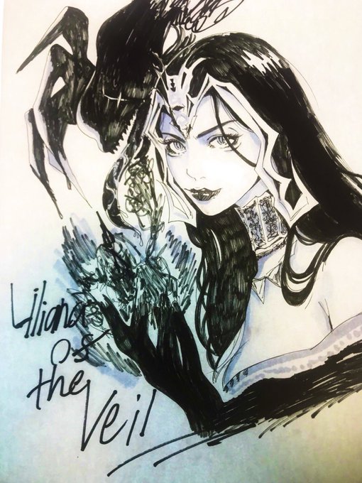 ヴェールのリリアナ様描きました😍 これからはちゃんとリリアナ様を相棒/companionに据えてモダン楽しんでいきたい所存です✨#mtg #mtgart
