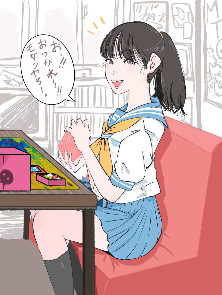 56 270 部室に行くと手馴れたシャッフルしながら後輩達を待つカードゲーマーな先輩が居るって妄想で描きました😂笑✨こんな先輩がいる青春がしたかったな〜😊✨ #mtg #mtg女子 20/07/26 19:19