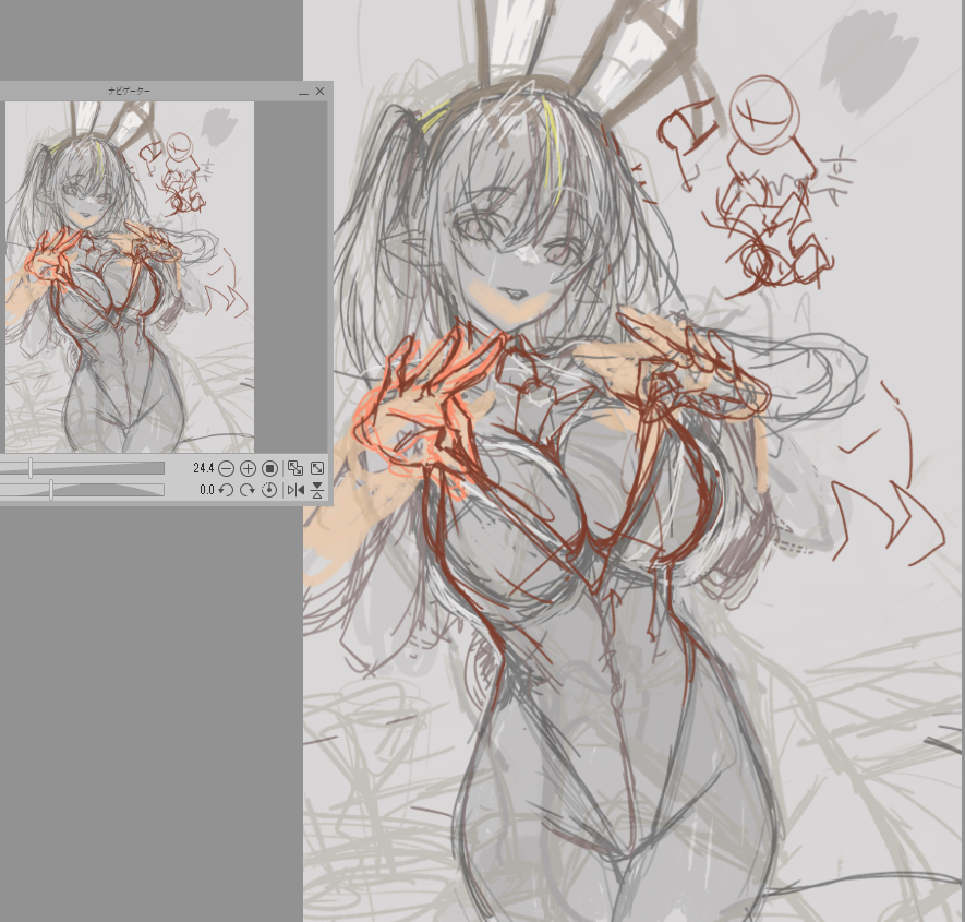ムチムチというよりなんかゴツいわあ…て描き直す前のskebラフ