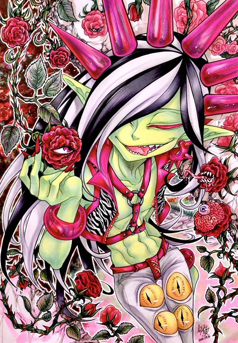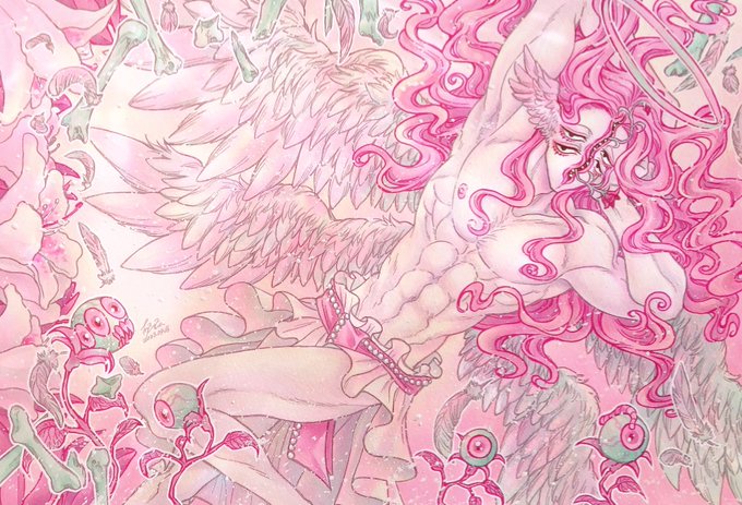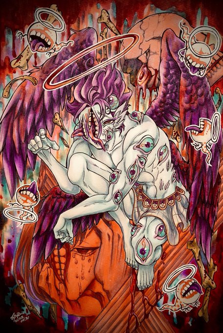 3 10 憎しみの天使/by2023.04.30(完成) (誰も憎みたくないのに) (憎まなければ己で無くなる) 理性と本能が分かれた人格 「憎くて憎くてブッ飛びそうだァ…♡」 #創作 #コピック #聖唇天使 #ニュクイド 23/04/30 23:03