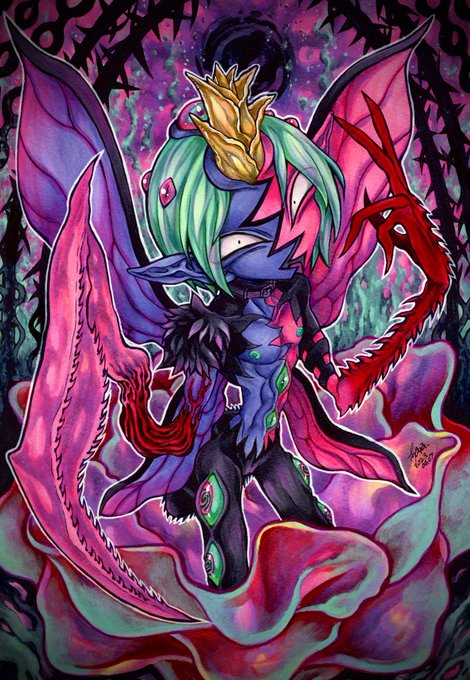 蝿王子ヴヴズェータ🪰/by2023.04.07(完成) 闇の中から聞こえる羽搏きに 耳を傾けてはいけない (艶やかな死の香りは) (手招くように微笑んでいる) #創作 #コピック #アクリルガッシュ