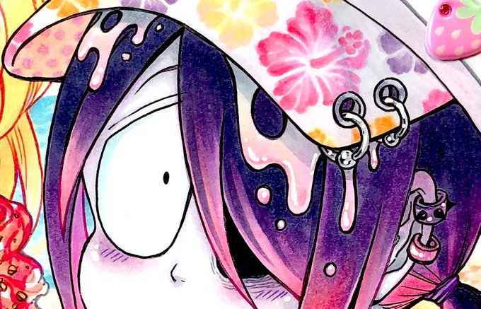 0 2 【おまけ】大雑把なメイキング。 下書き→線画(ペン入れ済み)→着彩(線画にも加筆しつつ)→ホワイト差し•アクリルガッシュも併用しながら塗り重ねの往復→色々細部まで補強→完成。 #コピック #アクリルガッシュ #メイキング 23/04/08 10:32