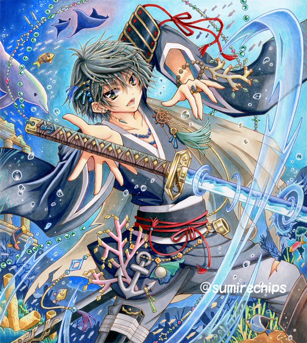 12 40 海の剣士💙 過去の作品です😊 #アナログ絵 #コピック #illustration 23/07/09 11:10
