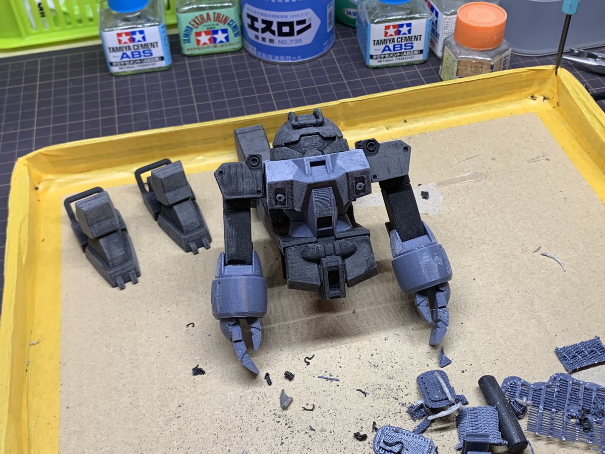 AFINIAでプリントして仕上げの積層痕消しはやらないと決めていたので最低限のバリ処理だけやって接着中 #G_Witch #水星の魔女 #デミトレーナー #ガンプラ