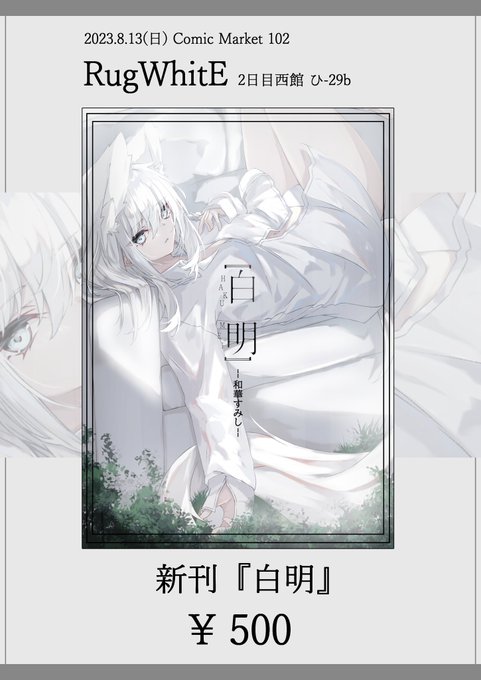 56 212 #C102 2日目 西ひ-29b 『RugWhitE』 お品書きです!よろしくお願いします! 23/08/06 17:13