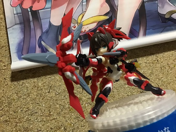 #デスクトップアーミー アスラ朱羅【忍者】完成。 有識兄貴の教えで無事に延長間接を組み込み、 各種レビュー動画を参考にして色々組み替えた。 結果、商品仕様に無い弓兵モードを実現できたので大満足!