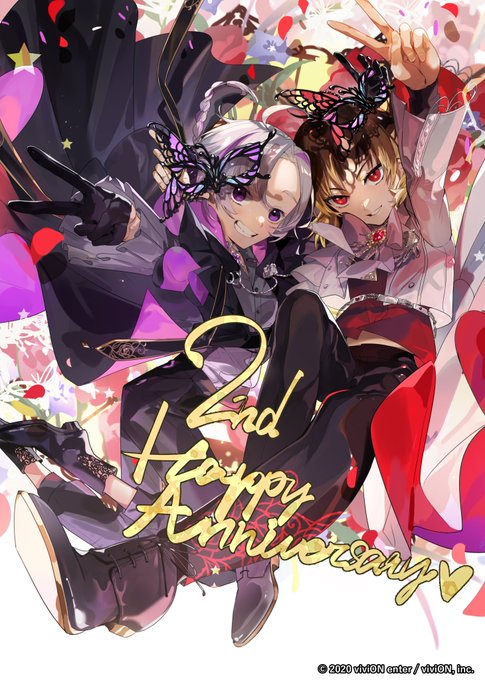 88 211 #クロケスタ2周年 二周年おめでとうございます~🎉🎉!お祝いイラストを描き下ろさせていただきました!🦋 こちらのイラストは「CLOQUESTA〜2nd Anniversary BOOK〜」に掲載されます。 #クロケスタ 23/03/26 16:05