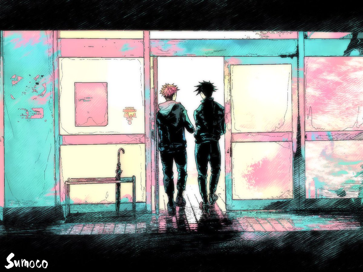 さしす🌟 時短で描くつもりが、思いの外メチャクチャ時間掛かった_(:3」z)_ 背景は自分で撮った写真を元に色々加筆修正頑張ってみました。 何となくそれっぽく見えてたら、もうそれでええやん…(あきらめた) #JujutsuKaisen #jujutsukaisenfanart #呪術廻戦ファンアート #五条悟 #夏油傑 #家入硝子
