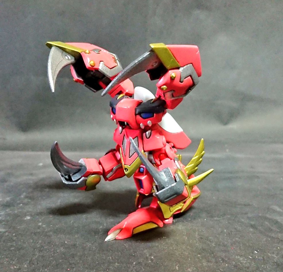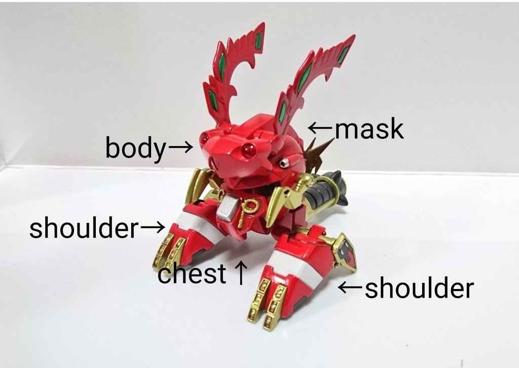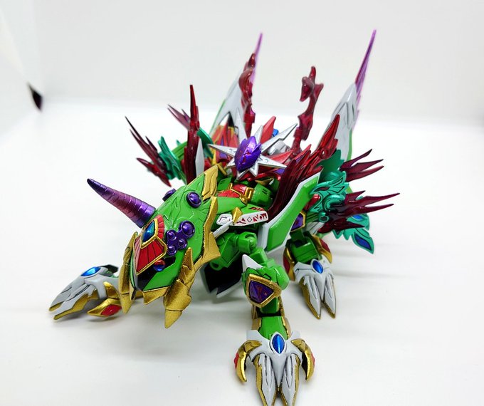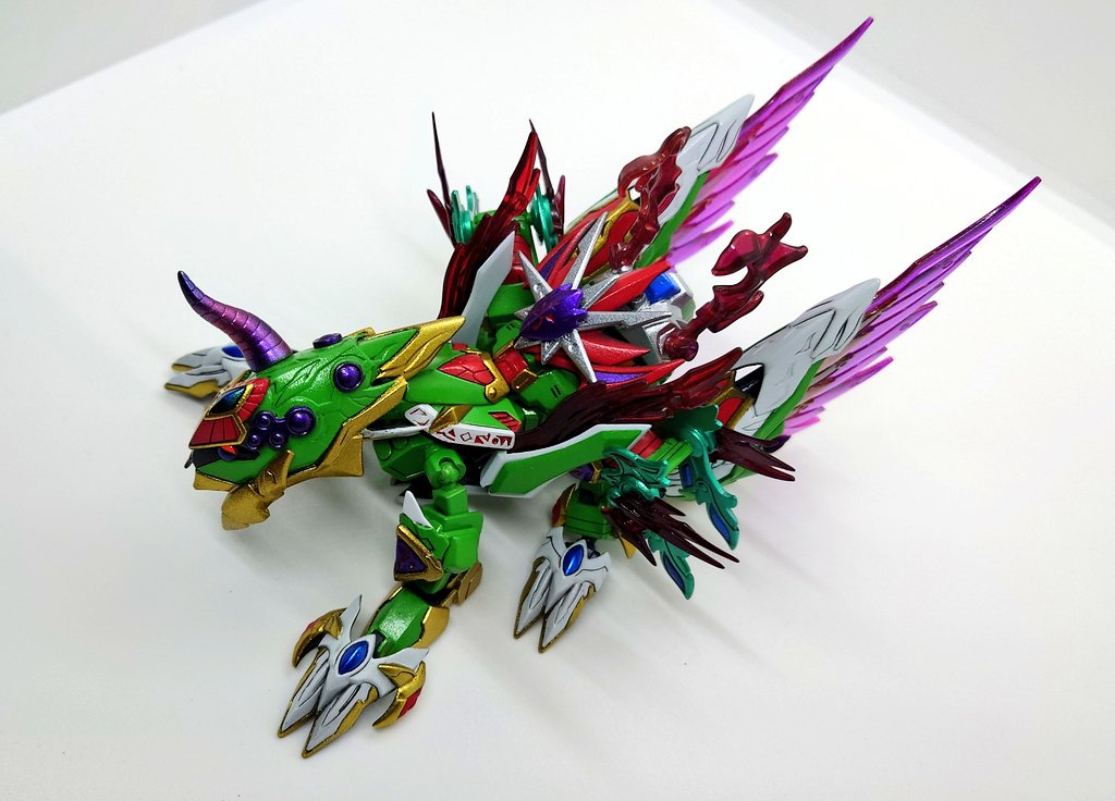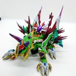 神獣形態 最初は『ティーゲル』形態の予定だったのですが モチーフはトカゲです。 四つん這いで変形も面白みがないかな?と思いブリッジ態勢で変形していますw ちなみに余剰パーツはなんとゼロです!! #七人の欠落した超将軍