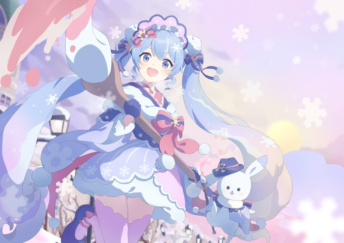 雪ミク2023さん、夜明けモチーフの淡い色使いが好きです…… #初音ミク #雪ミク