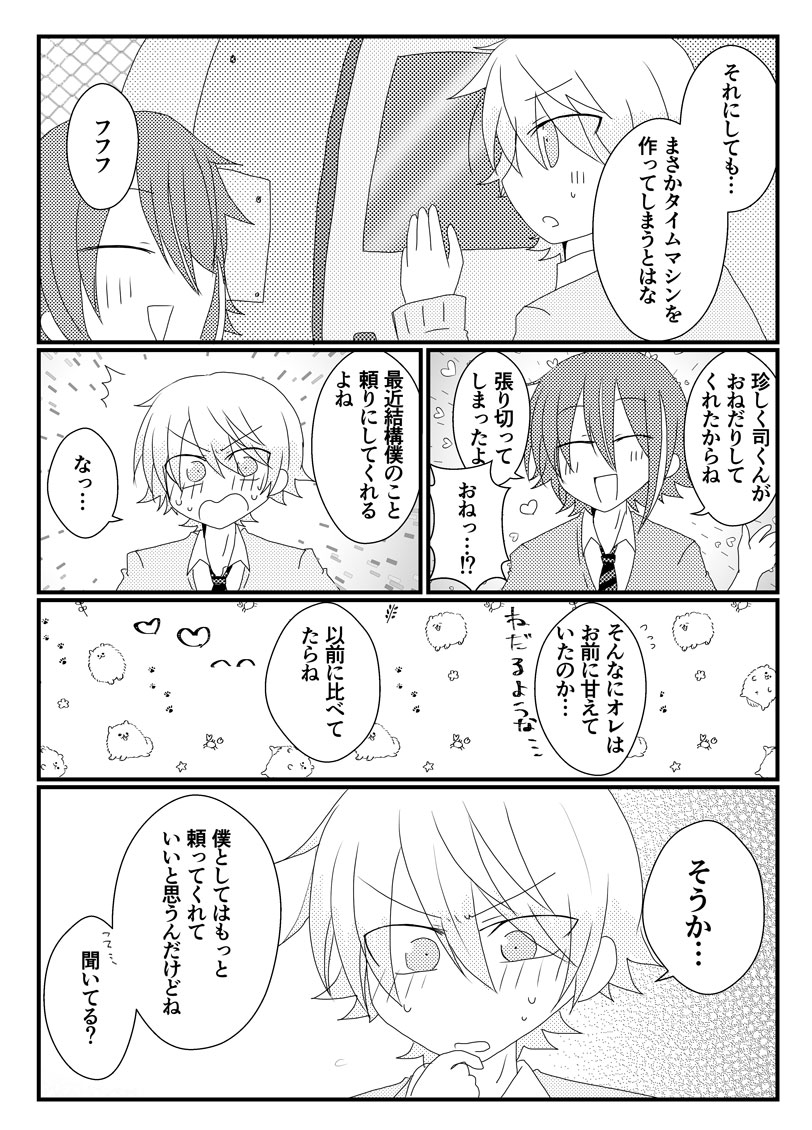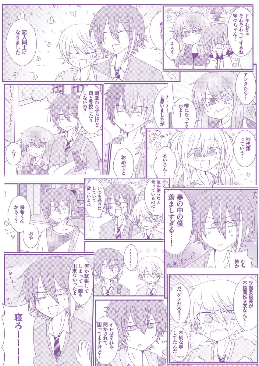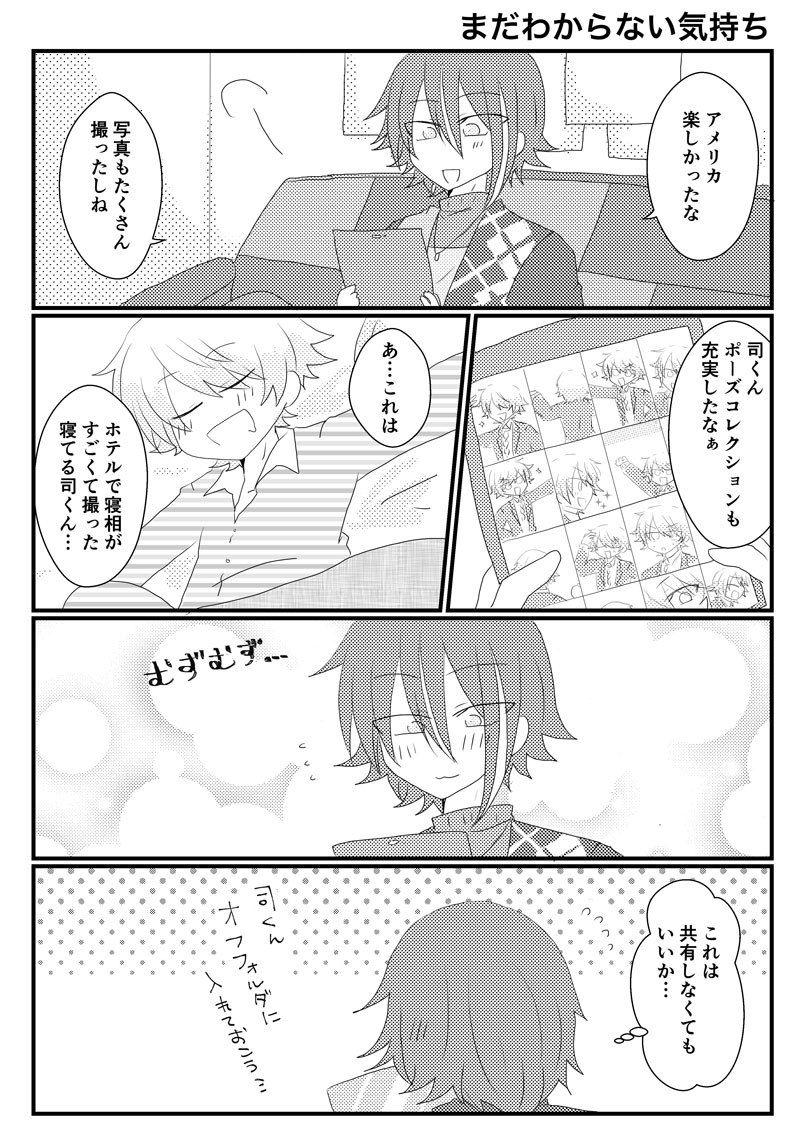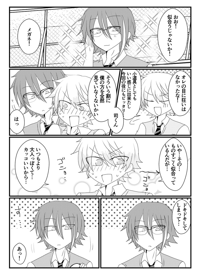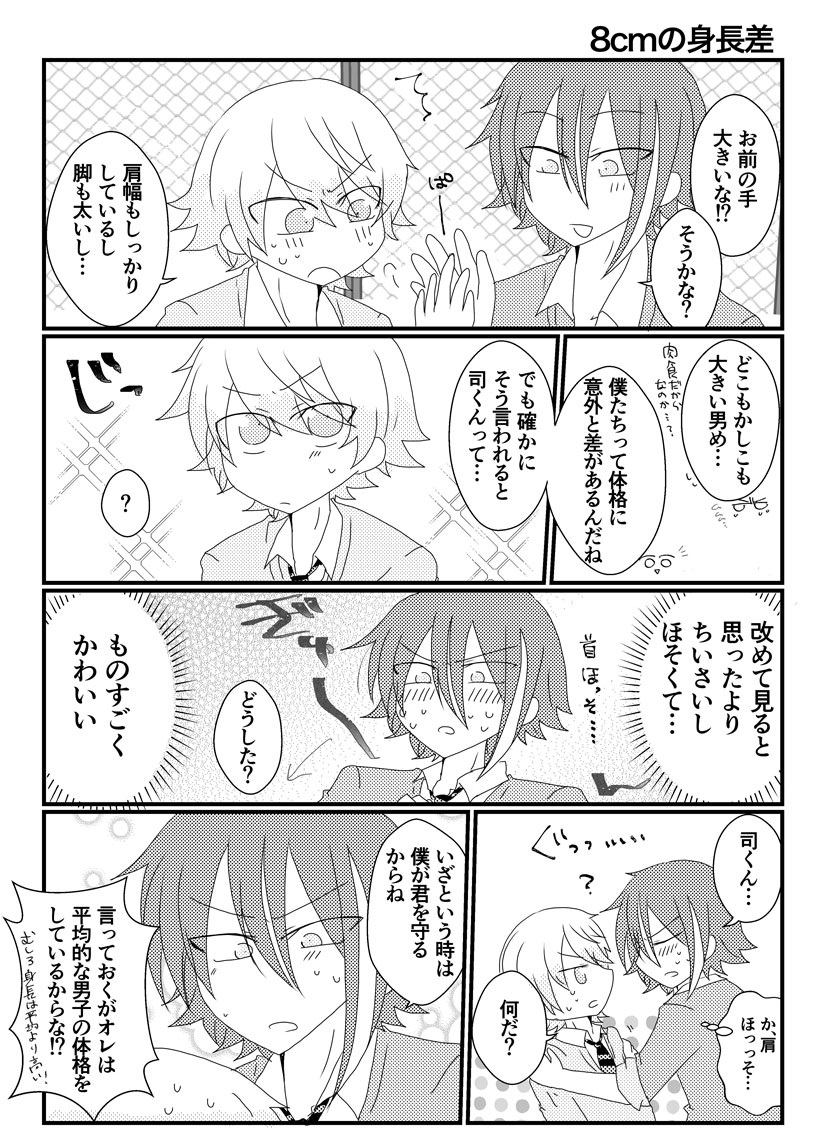 7/23類司オンリー(巡ステ) 新刊サンプル② お付き合いはじめたばかりの2人とちょこっと登場する周りの人々の日常1P漫画つめあわせ本です(全20P/300円) 部数の参考にしたいので購入予定の方はアンケートにご協力お願いします 部数アンケート→forms.gle/J1MQnCimbgi5ii… よろしくお願いします~!