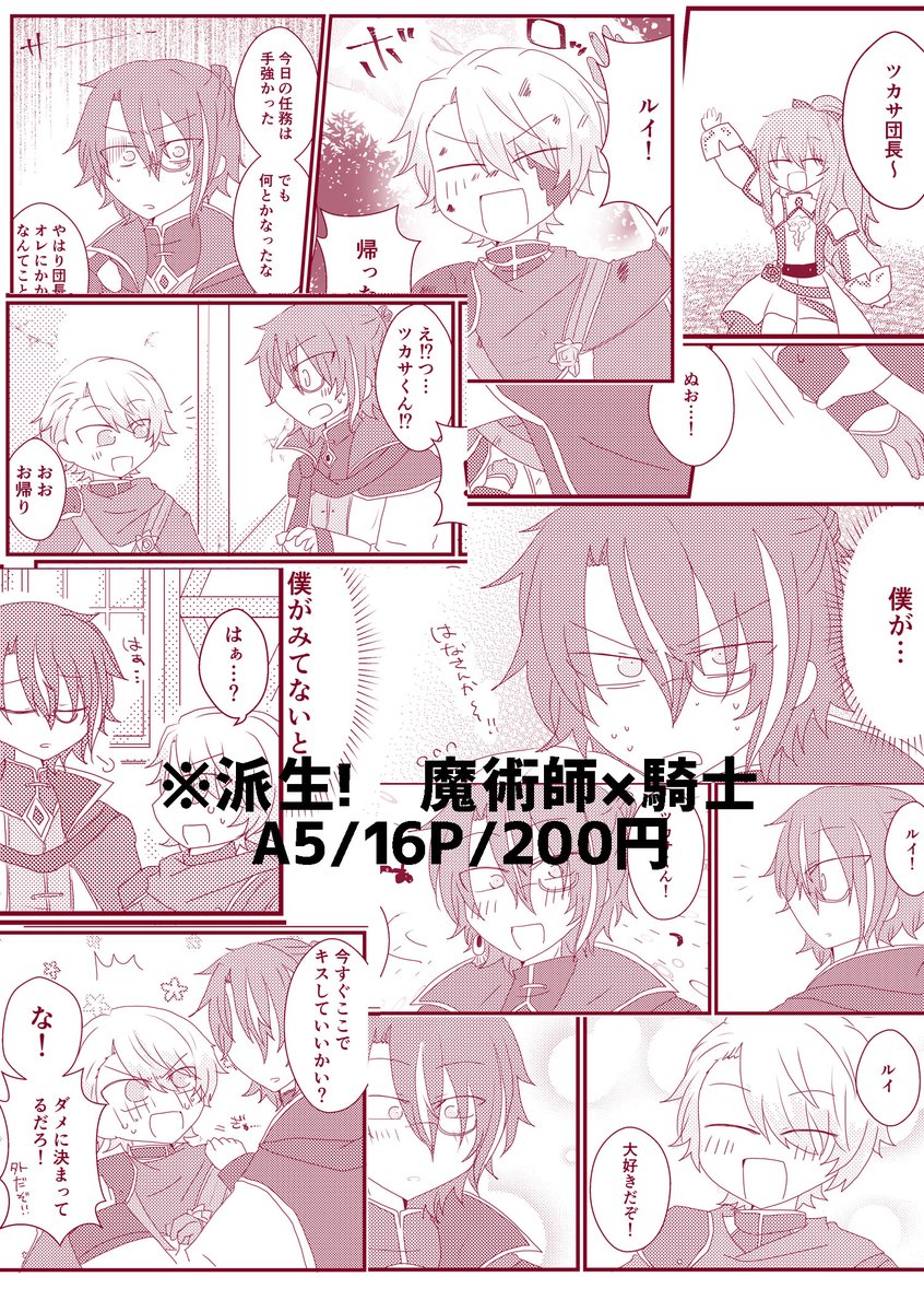 5/3類司プチオンリー(巡ステ) 新刊サンプル② ※派生!魔術師🎈×騎士🌟ほのぼの漫画つめあわせです。概ねラブラブ、2Pツイッターの再録があります(全16P/200円) 部数の参考にしたいので購入予定の方はアンケートにご協力お願いします →forms.gle/62xeXiWwPCNcxW… よろしくお願いします~!
