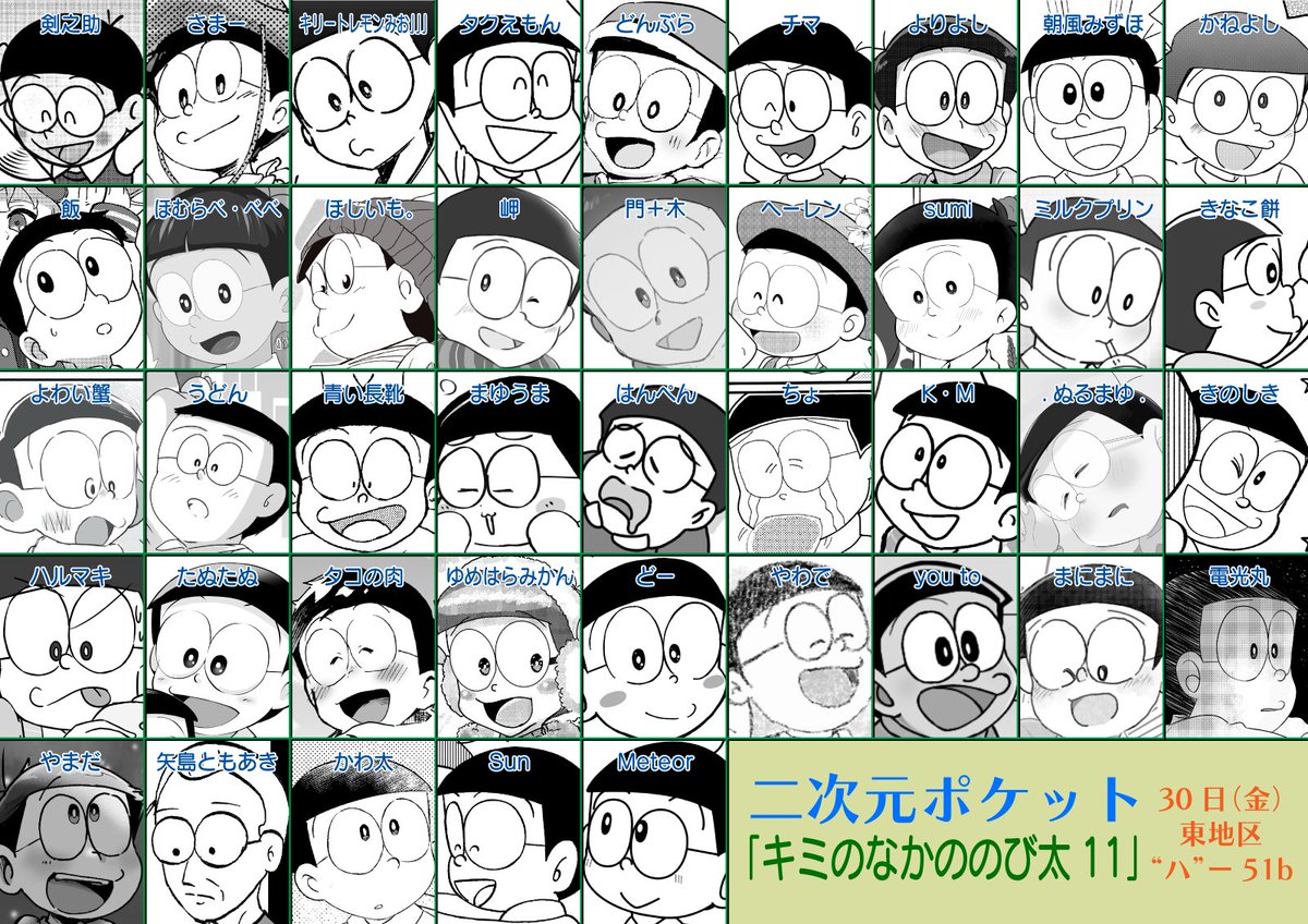 31 125 12月30日(金)開催のコミックマーケット101にて、「キミのなかののび太11」を頒布いたします。A5/136ページ、価格は700円です。総勢41名によるボリュームたっぷりの内容となっております。当日はサークル「二次元ポケット」東ハ51bへ、是非お立ち寄りください。#c101 22/12/24 20:09