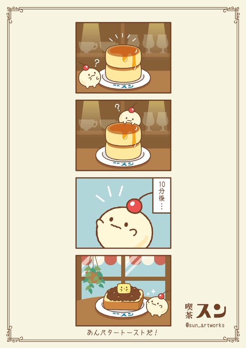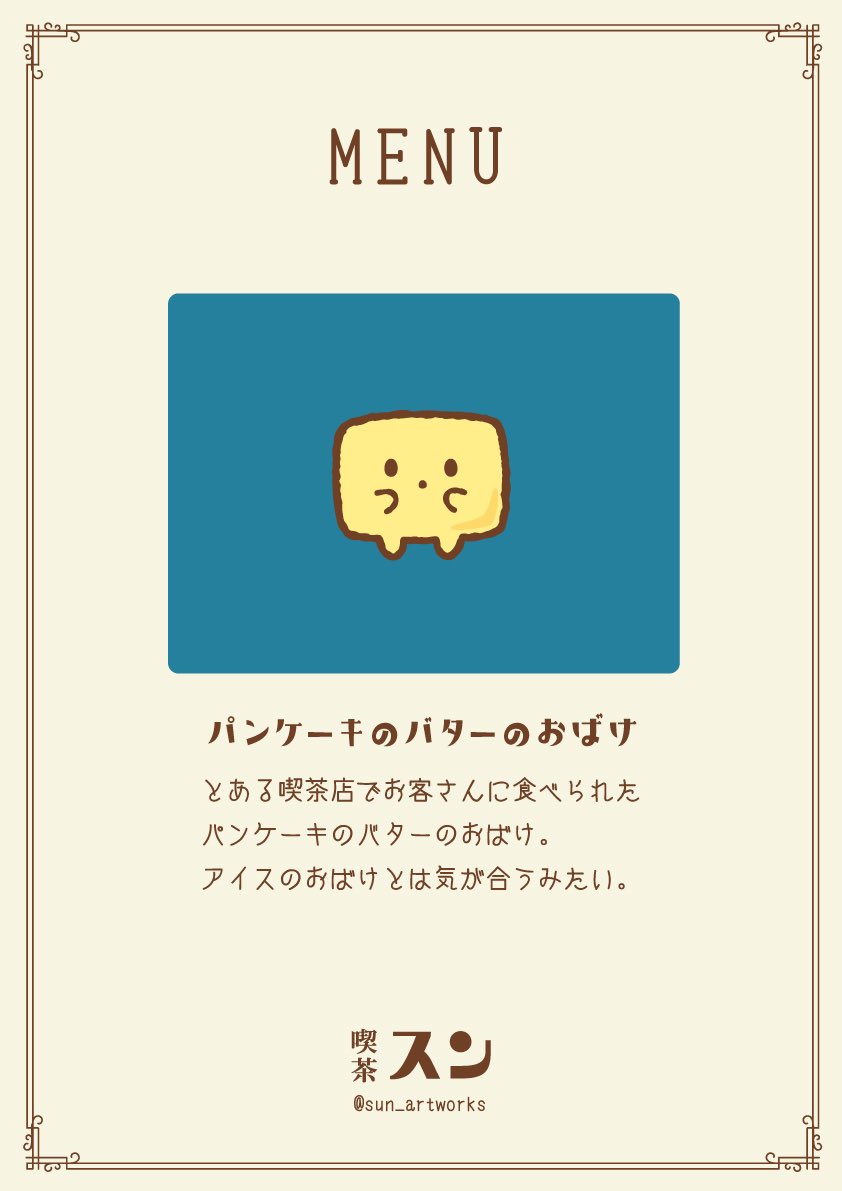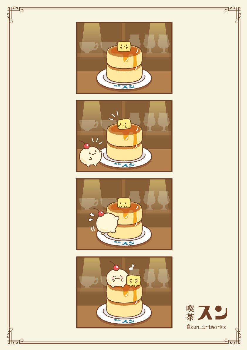 とある喫茶店に住んでいるパンケーキのバターのおばけ🥞 #イラスト #オリジナル #創作 #illustration #漫画が読めるハッシュタグ #4コマ漫画