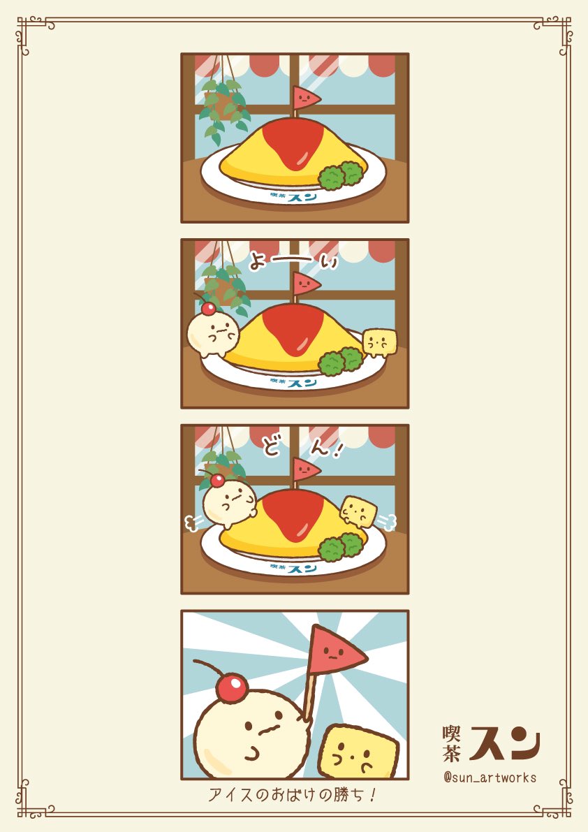 3 10 とある喫茶店に住んでいるオムライスのはたのおばけ🚩 #イラスト #オリジナル #創作 #illustraion #漫画が読めるハッシュタグ #4コマ漫画 22/04/12 21:00