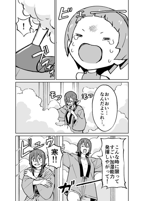 1 6 加湿器の12p描きました。今年の正月頃に考えた漫画が今さら完成した…。 22/10/12 11:44