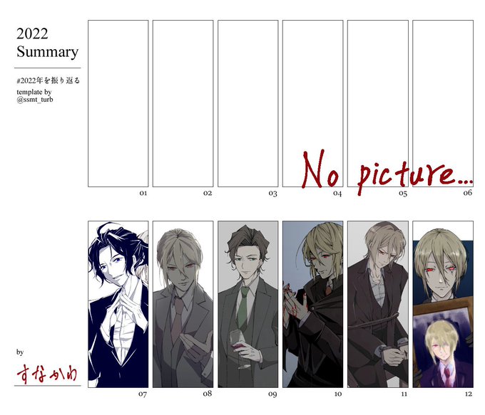 #2022年を振り返る 7月末にゆもりに転がり落ちて今日までで(落書き含めたら)60枚くらい絵を描いていたー!上半期と下半期のバランスーー! 来年は12マス埋まるようにしたいな。変わらず一人で踊っていると思いますが、2023年もよろしくお願いします🎻🌹