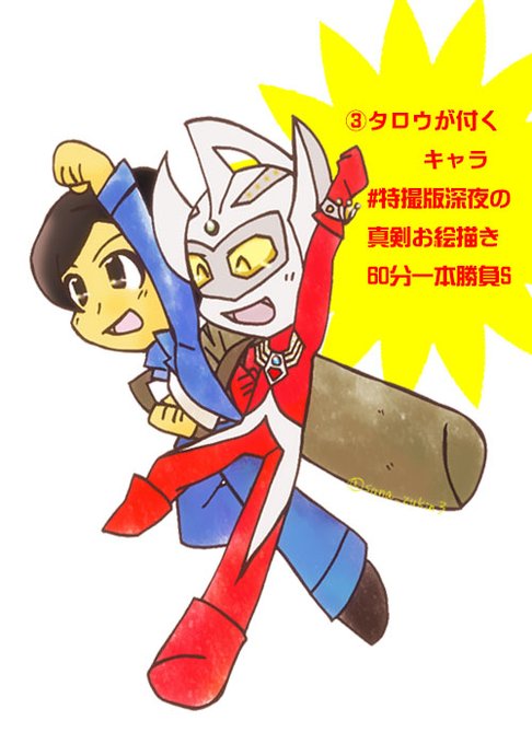 2 3 ③タロウが付くキャラ 1ドロどころか1.5ドロの大遅刻なんですが、描きたかった2人です! #特撮版深夜の真剣お絵描き60分一本勝負S 23/04/16 23:38