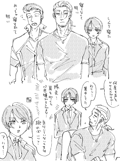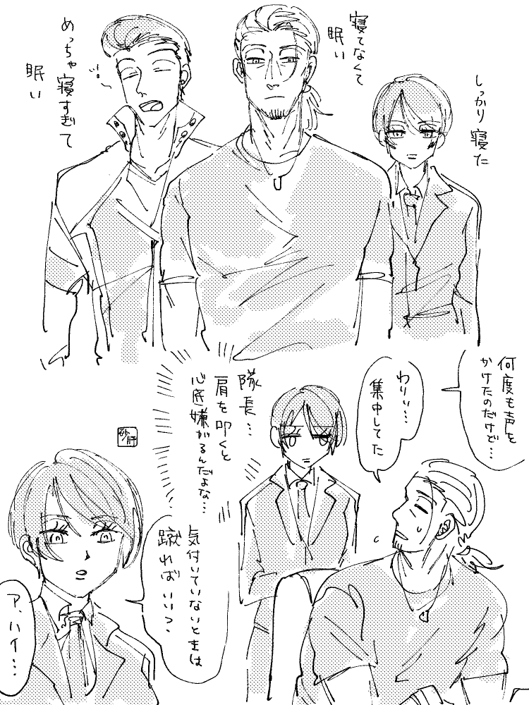 114 1114 ガタケット171にて配布予定だった無配漫画です。(1/2) 新刊(冬島隊の本)の後日談ですが、単独で読めます。 数日お休みを貰っていた当真くんが復帰した日の話です。 22/07/31 23:02