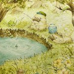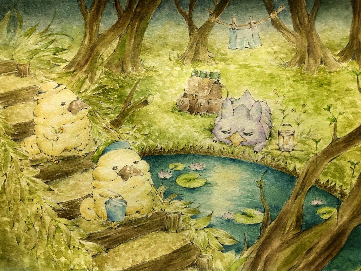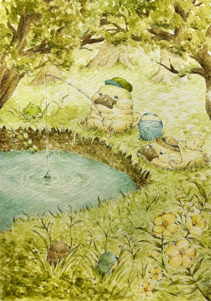 月明かりの帰り道はちょっぴり怖いけど、キラキラ光るお池がきれい✨ #絵描きさんと繫がりたい #冬の創作クラスタフォロー祭り #2021年年末に今年まだ出会ってない素敵な作品に出会うタグ #透明水彩 #水彩画 #アナログ #カモノコ #ドルミミ