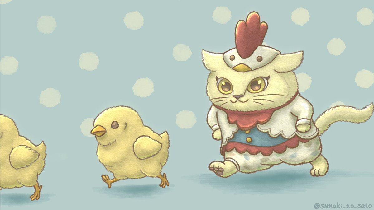 #猫の日 ということで、空から猫ちゃん襲来ッ🐱🐾🎈 鶏に育てられた小さな猫の女の子『チャボネコちゃん』です🐔✨ 体はうっすらひよこ色🐣 #ねこの日 #にゃんにゃんにゃんの日 #イラスト #illustration #私の絵柄が好みって人にフォローされたい #チャボネコ