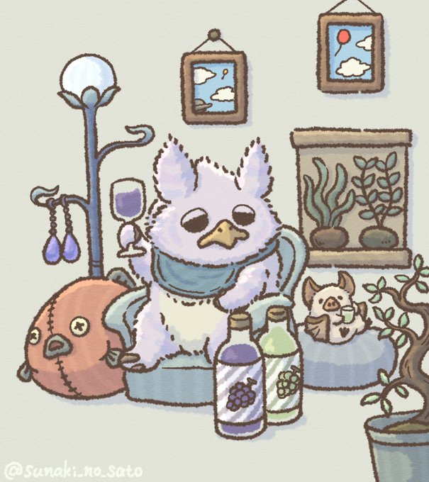 『ユキンコトリの夏休み』 暑いのは苦手だけれど夏は好き🌻 おうちでのんびりひんやりタイム🍧 #絵描きさんと繫がりたい #夏の創作クラスタフォロー祭り #ユキンコトリ #イラスト #ゆるいイラスト