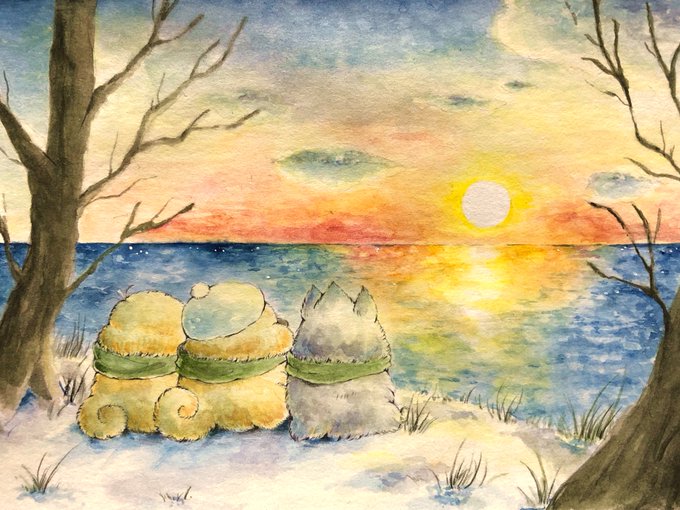 Happy New Year! あけましておめでとうございます⛩ 今年もよろしくお願いします✨ カモノコくんたちは初日の出を見にいってきたみたいです🌅 #イラスト #illustration #透明水彩 #お正月 #元旦 #絵描きさんと繋がりたい