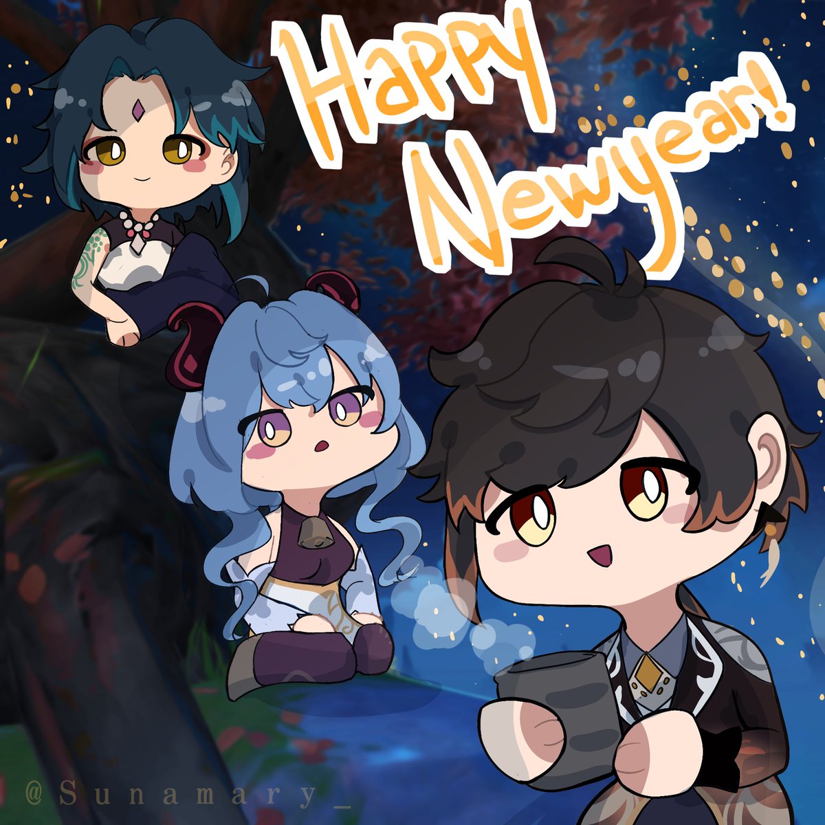 Happy New Year 2022! May everything get better this year! Also, Happy Birthday Zhongli! #genshinimpact #原神イラスト #原神 #Xiao #Ganyu #Zhongli #HappyNewYear