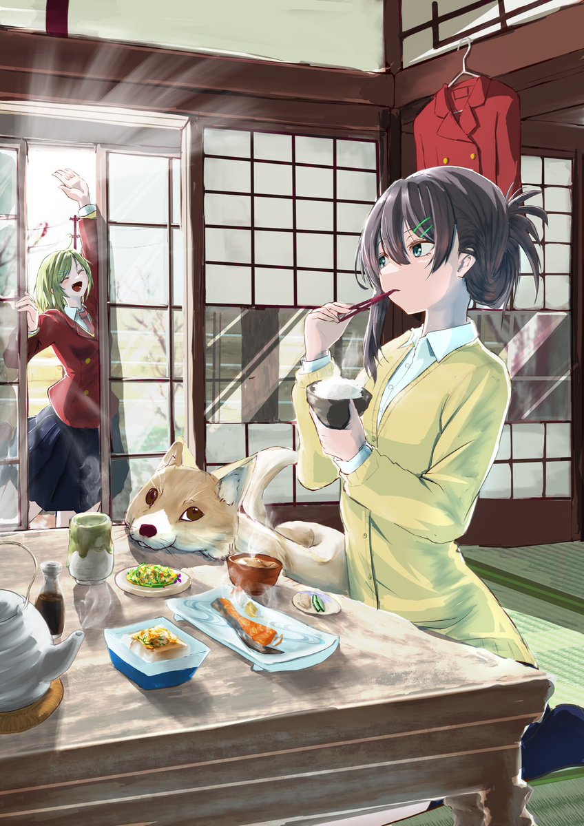 20 34 「そろそろ休憩しよっか?」 「「さんせーい」」 #のみねーこ作品 #世闇アート #メシアート #闇猫のメシ会 22/07/31 00:59