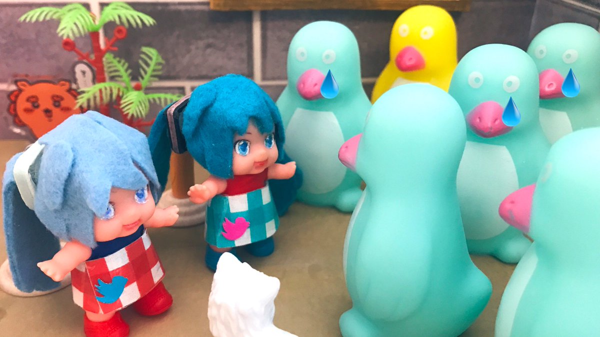 7/30のお題【くっつく】フライング 「大量解雇となったTwitterバードが訪ねてきたので事の顛末を聞いたダヨー。世知辛い世の中ダヨー」 「話を聞いたお礼にTwitterバードワッペン(廃番品)をスカートにくっつけてもらったダヨー」 #深夜の初音ミク撮影60分一本勝負