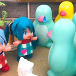 7/15のお題【アイテム】 🏝「スゴイアイテム手に入れたダヨーこれさえあればあたいは救命士になれるダヨー✨」 ❄️「そりはジョージのアイテムなんダヨー!ジョージに返すダヨー!」 🐒 #深夜の初音ミク撮影60分一本勝負