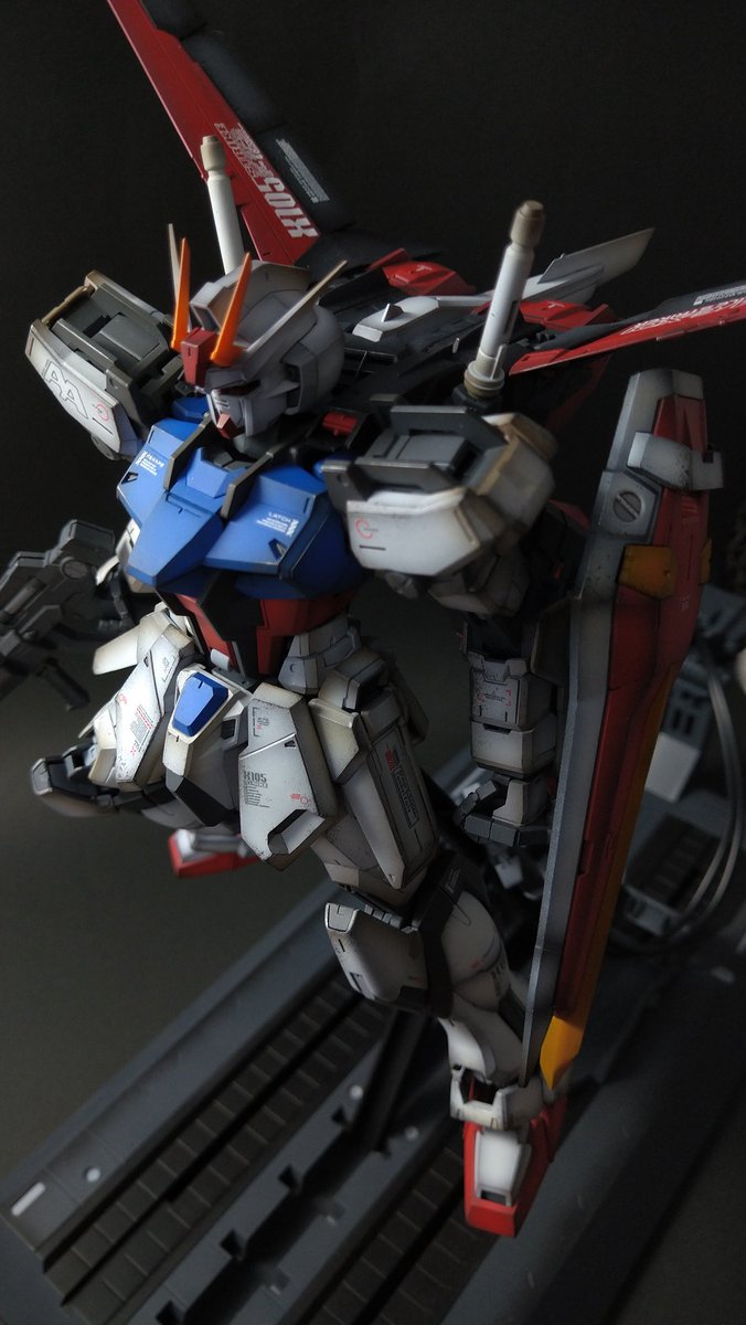 MGエールストライク完成しました! スカートを1.2㎜プラ板で幅増し、スリッパは削り込んで小さくしています。 重みのある塗装とウェザリングで、マッシヴな歴戦のストライクを目指しました! とにかく持てる技術は全て注ぎ込みました。ぜひ見てやって下さい! #ガンプラ #エールストライクガンダム