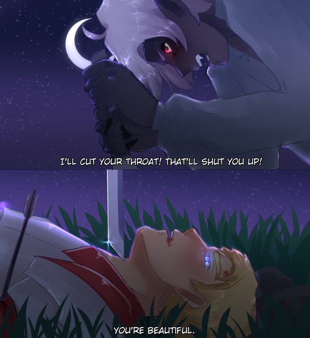 Day 12 of #Drowcember What's a cold-hearted drow assassin supposed to do when your target kinda cute tho (Original scene from Princess Mononoke) #drow #dnd #dndart #dnd5e #dndcharacter