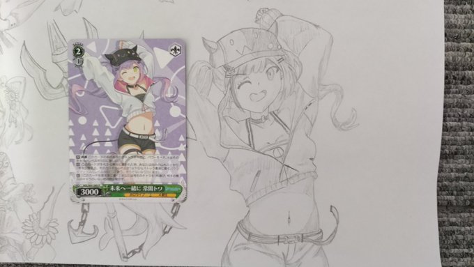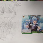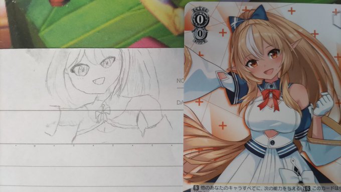 見本見ないでもう一回描いてみた。なんか見本見ないで描いたほうが顔上手く描けたかもしれない。 #しらぬえ