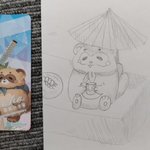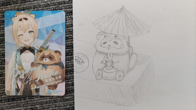 0 10 毎日絵描き練習三十一日目 ぽこべぇ あまりの暑さに団子屋で休憩するぽこべぇ。オリジナリティを出してみたかった。左のカードを参考にして描いてみたけど、なんかぽこべぇ自体はあまり変化ないから、もっと表情とか変えてみたかった。 #いろはにも絵を 22/06/30 19:52