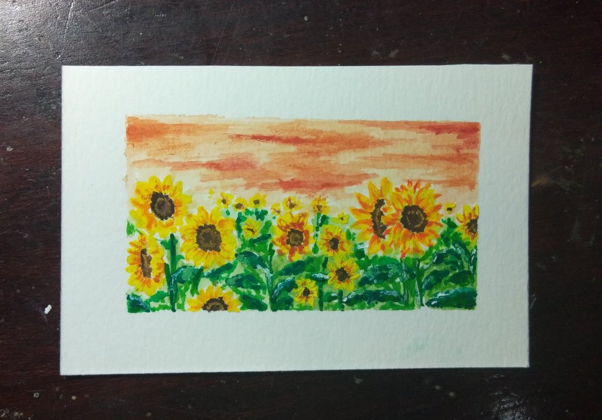 Here you go, my first gouache landscape. I'm sorry, I'm still trying😭😭😭 #sketch #art #ArtistsofSEA #artidn #gouache #painting #sunflower