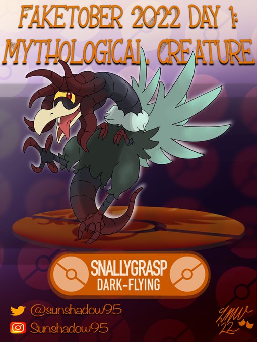 0 6 My first entry into the #faketober2022 from @cursedeya ‘s prompt list. Based on the Snallygaster, swooping silently and flying off with its prey. Repelled by seven pointed stars. Bit of an oddball, really. #pokemon #PokemonScarletViolet #inktober2022 #inktober2022day1 #fakemon 22/10/02 19:02