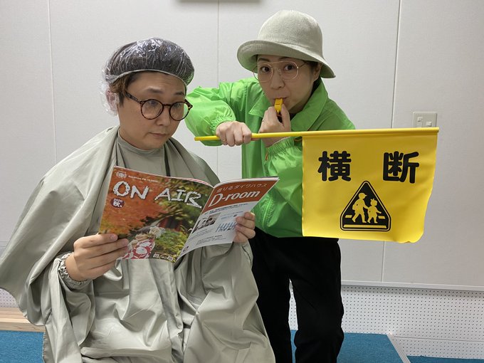 こんな2人ですが、 一応RADIOの生放送なうです。 #ハロウィン #地味ハロウィン #仮装 #コスプレ #パーマあててる人 #緑のおばさん #宮崎 #ラジオ #公開生放送