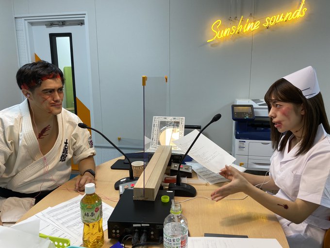 本日もこんな2人ですが、 一応RADIOの生放送なうです。 #ハロウィン #仮装 #コスプレ #スト2 #リュウ #ナース #ゾンビ #宮崎 #ラジオ #公開生放送