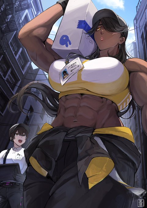 2308 16.4K Rabbit運送🐰 (少しリメイクしました) #イラスト #創作 #腹筋 #筋肉女 23/08/20 14:42