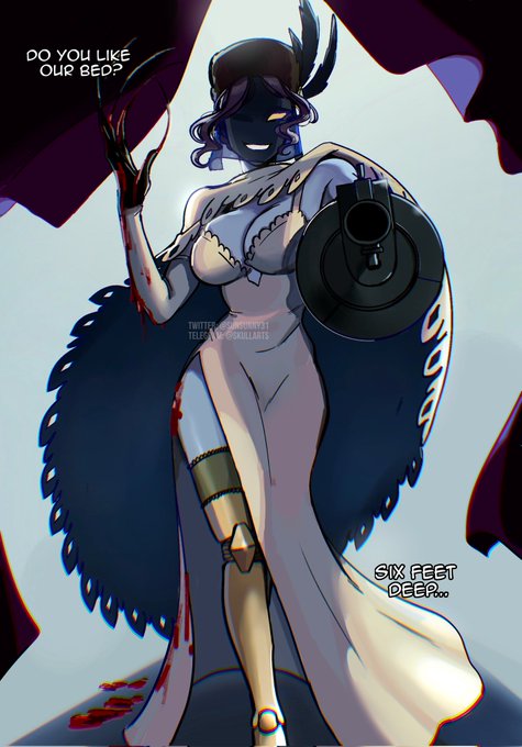 Happy birthday Black Dahlia 🥂 Hope we're not too late ! Collaboration with lovely @CHIKENUG1000000 💥💥💥 #skullgirlsfanart #skullgirls #skullgirlsblackdahlia #ArtistOnTwitter #Collaboration