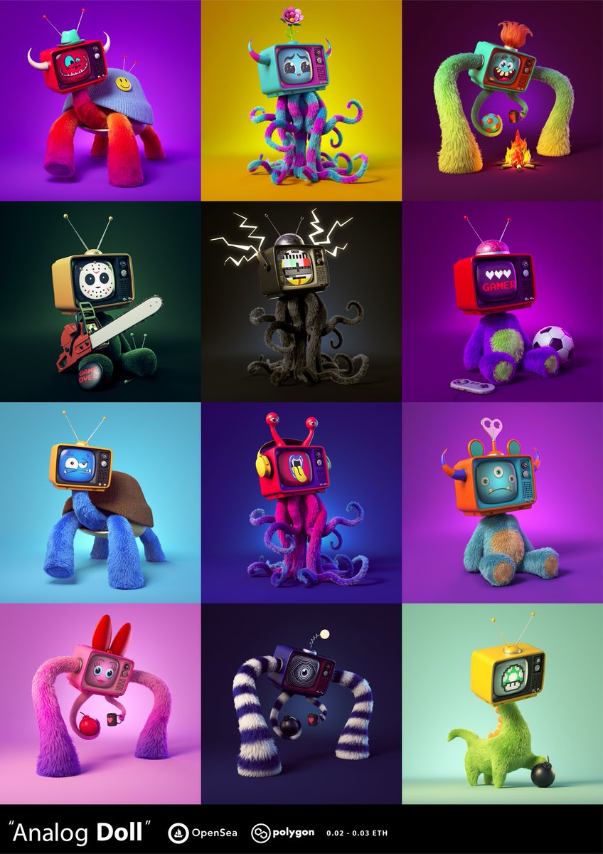 Memories of childhood TV "Analog Doll" on @0xPolygon @opensea 📺👾🕹️👾 70/99 already Sold 50 owners floor pricr 0.02 eth ⛽️❌ opensea.io/collection/ana… Join Discord : discord.gg/ZKv3P5cAk3 #NFT #NFTS #NFTCommunity #NFTdrop #nftart #OpenSeaNTF #NFTartists #Polygon #NFTJPN