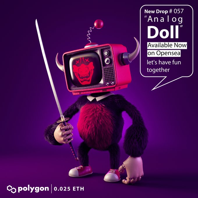 New Drop!! "Analog Doll" #057 on @0xPolygon @opensea 📺👹👹👹 Price: 0.025 eth Let's have fun together. opensea.io/collection/ana… #NFT #NFTS #NFTCommunity #NFTdrop #nftart #OpenSeaNTF #NFTartists #Polygon #NFTcollection #NFTJPN