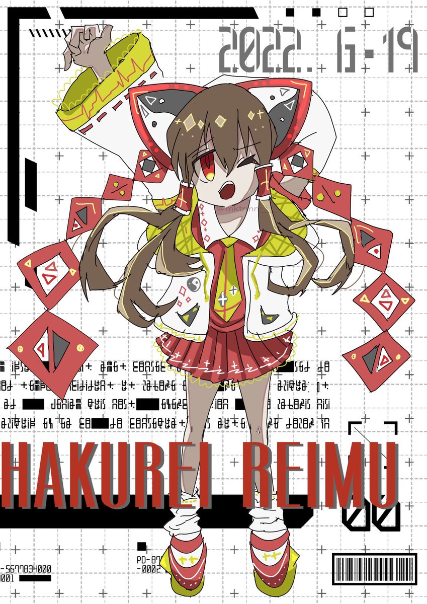 3 16 サイバーパンク風の博麗霊夢+15 #深夜の真剣お絵描き60分一本勝負 22/06/19 23:20